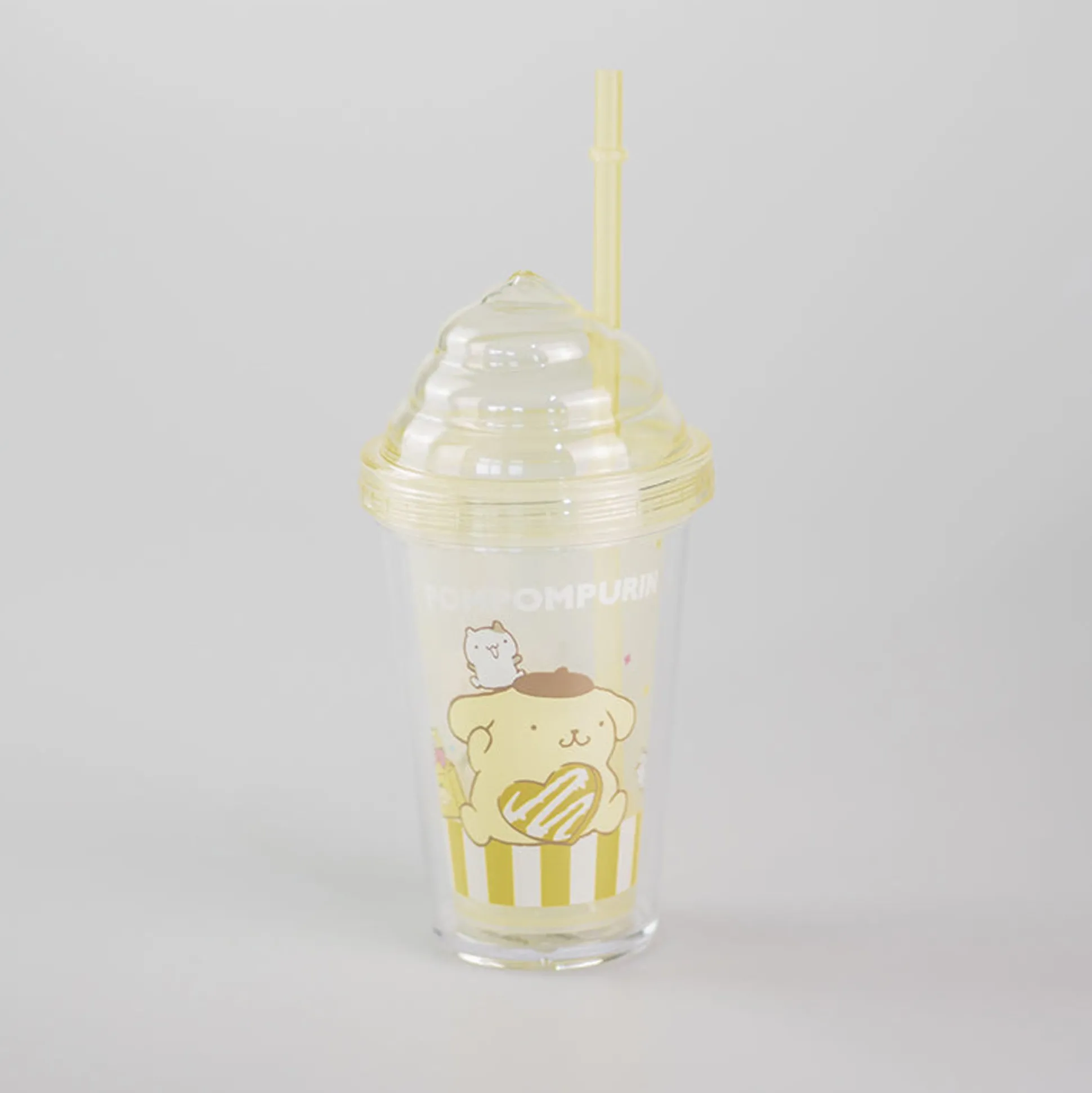 Borraccia Gialla In Plastica Dura Con Cannuccia Di Pompompourin Della Collezione Sanrio.
