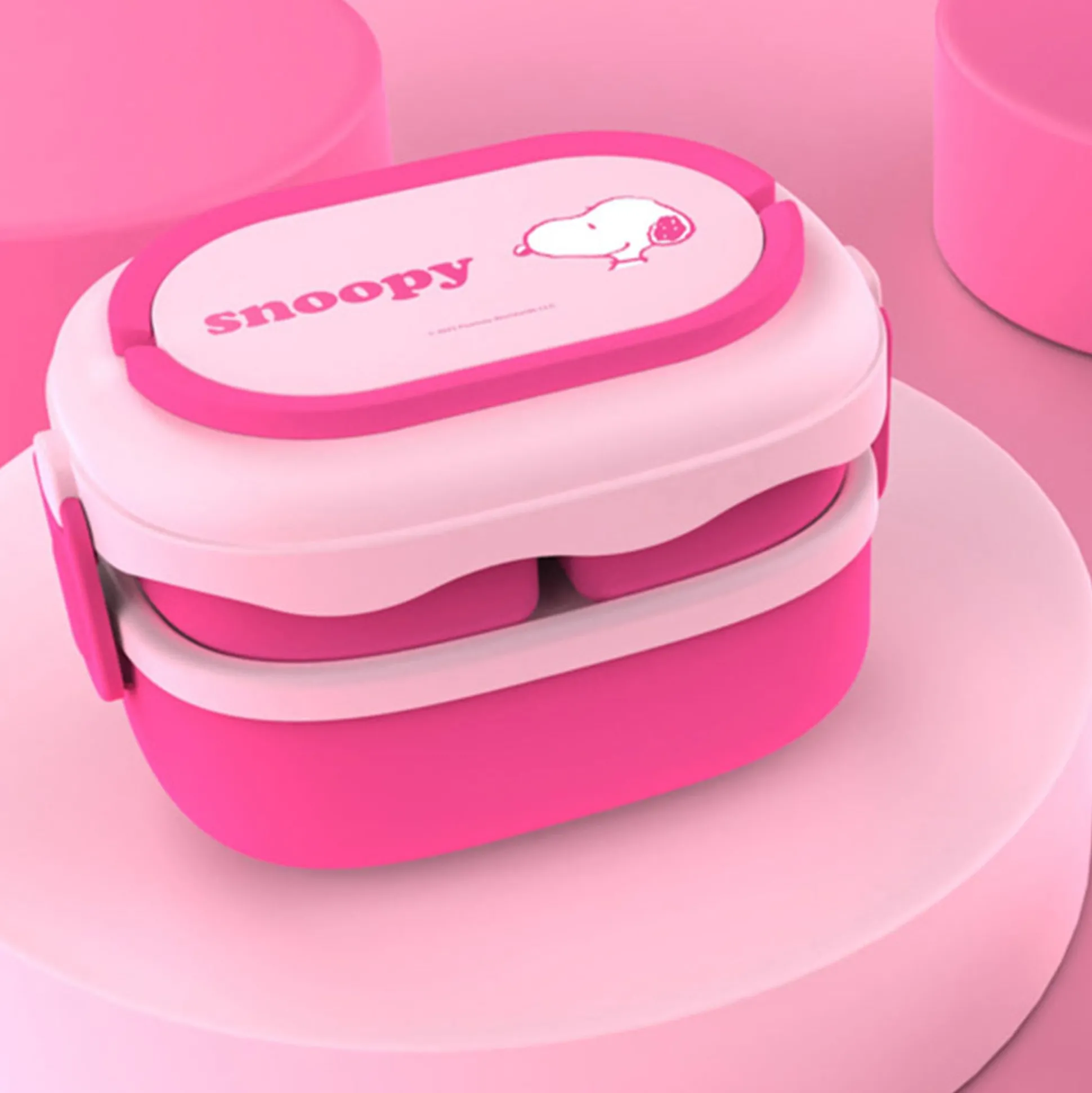 Pratico E Comodo Porta Pranzo A Due Piani Con Snoopy Di Colore Rosa, Posate Incluse!