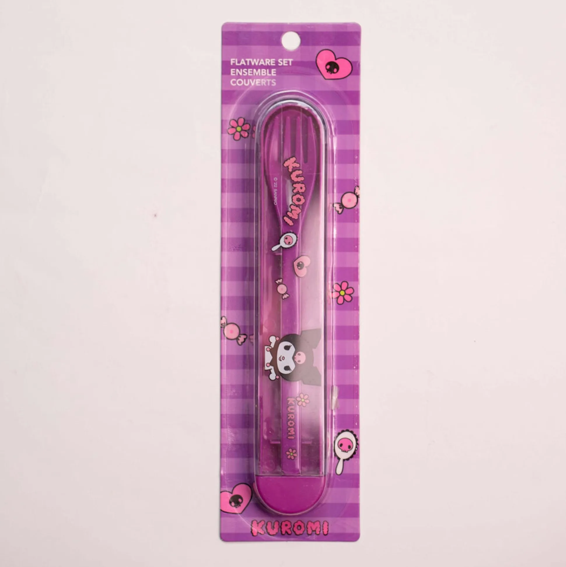 Set Di Posate In Plastica In Colo Viola Di Kuromi Della Collezione Sanrio.