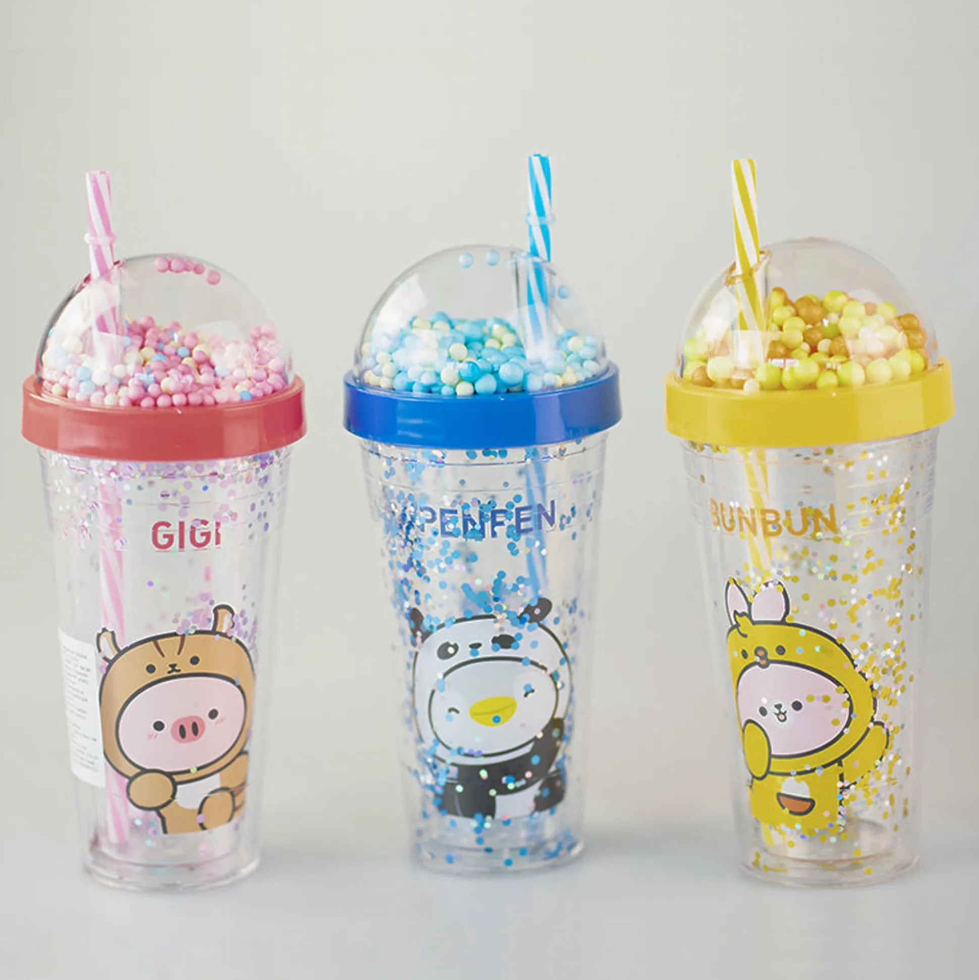 Borraccia Doppio Strato Con Cannuccia E Brillantini.