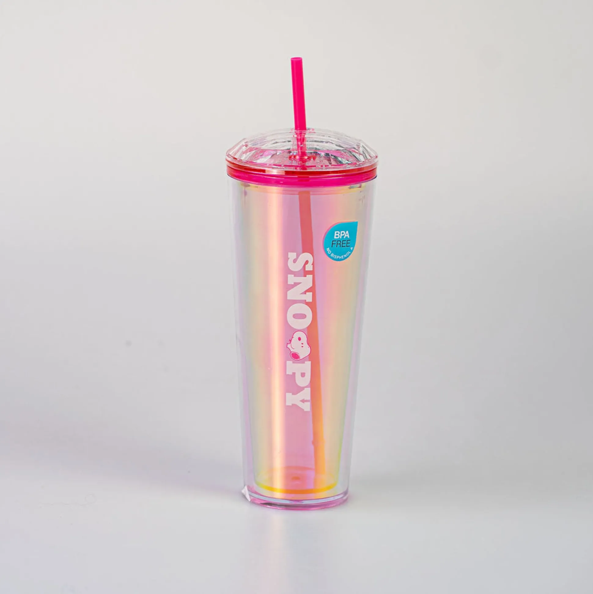 Borraccia Fucsia Colorata Con Cannuccia, Della Collezione Snoopy, Con Logo Bianco.