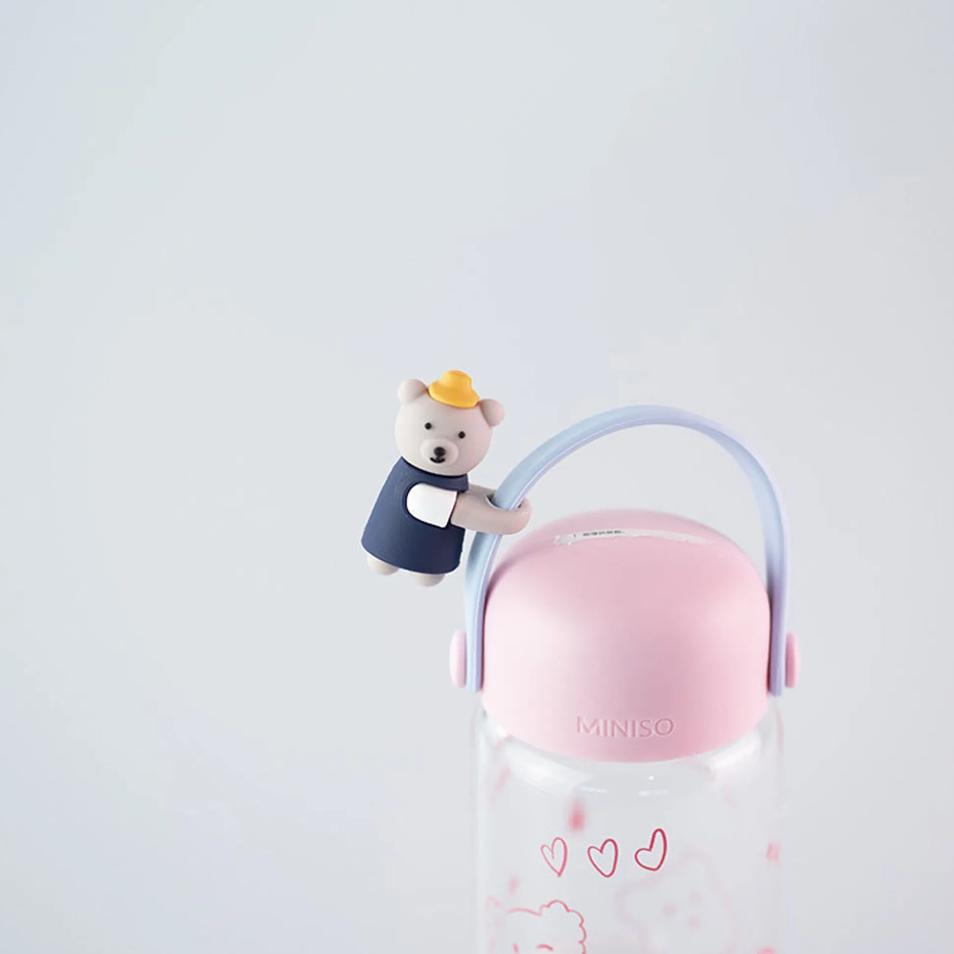 Borraccia In Vetro Trasparente Con Disegni Rosa E Manico Rosa.