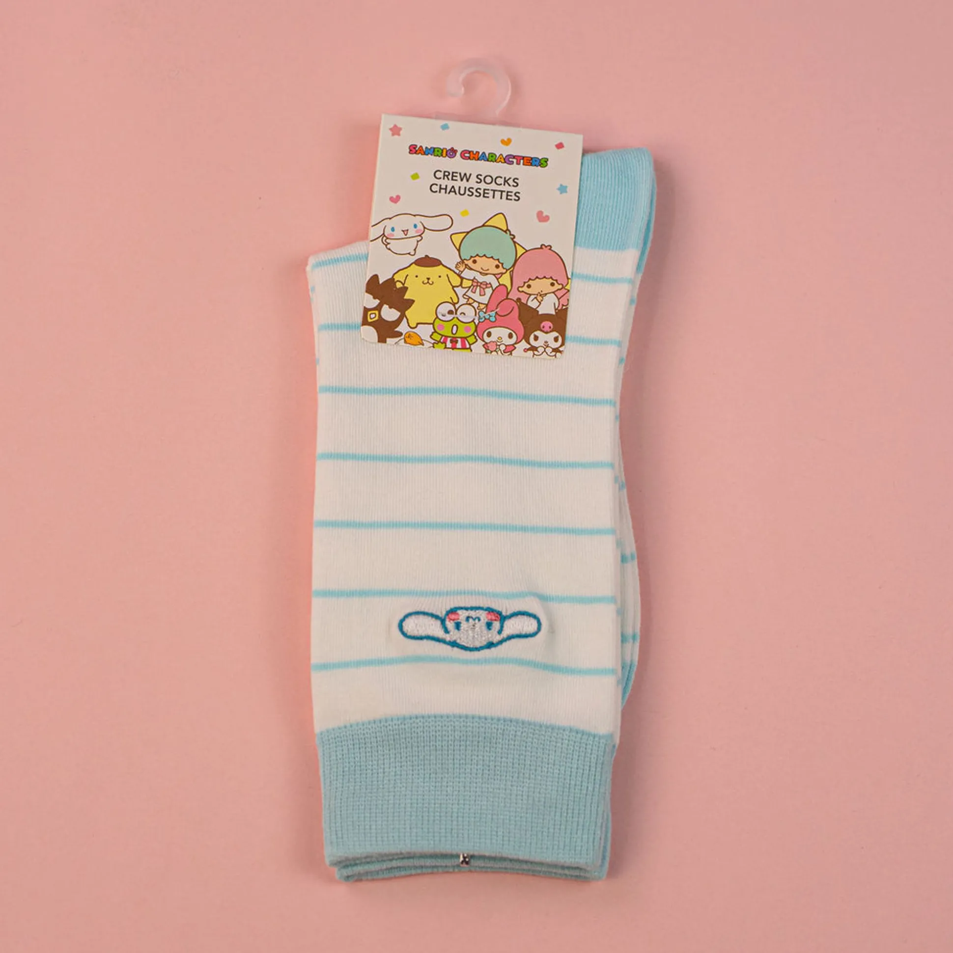 Calzini Bianchi E Azzurri A Strisce Del Personaggio Cinnamoroll Della Collezione Sanrio..