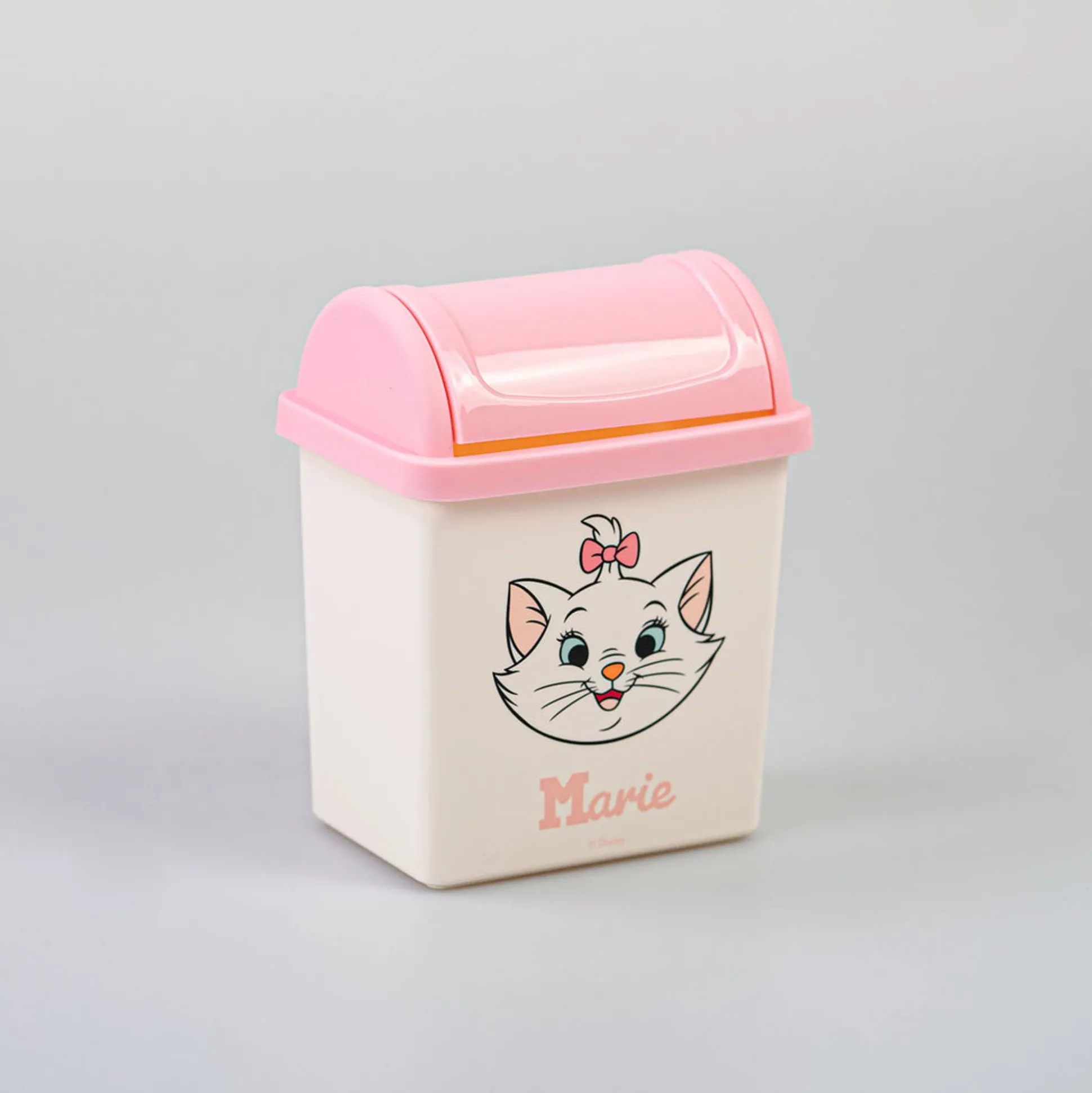 Cestino Da Scrivania, Bianco Con Coperhio Rosa Con Viso Di Marie Degli Aristogatti Della Collezione Disney.