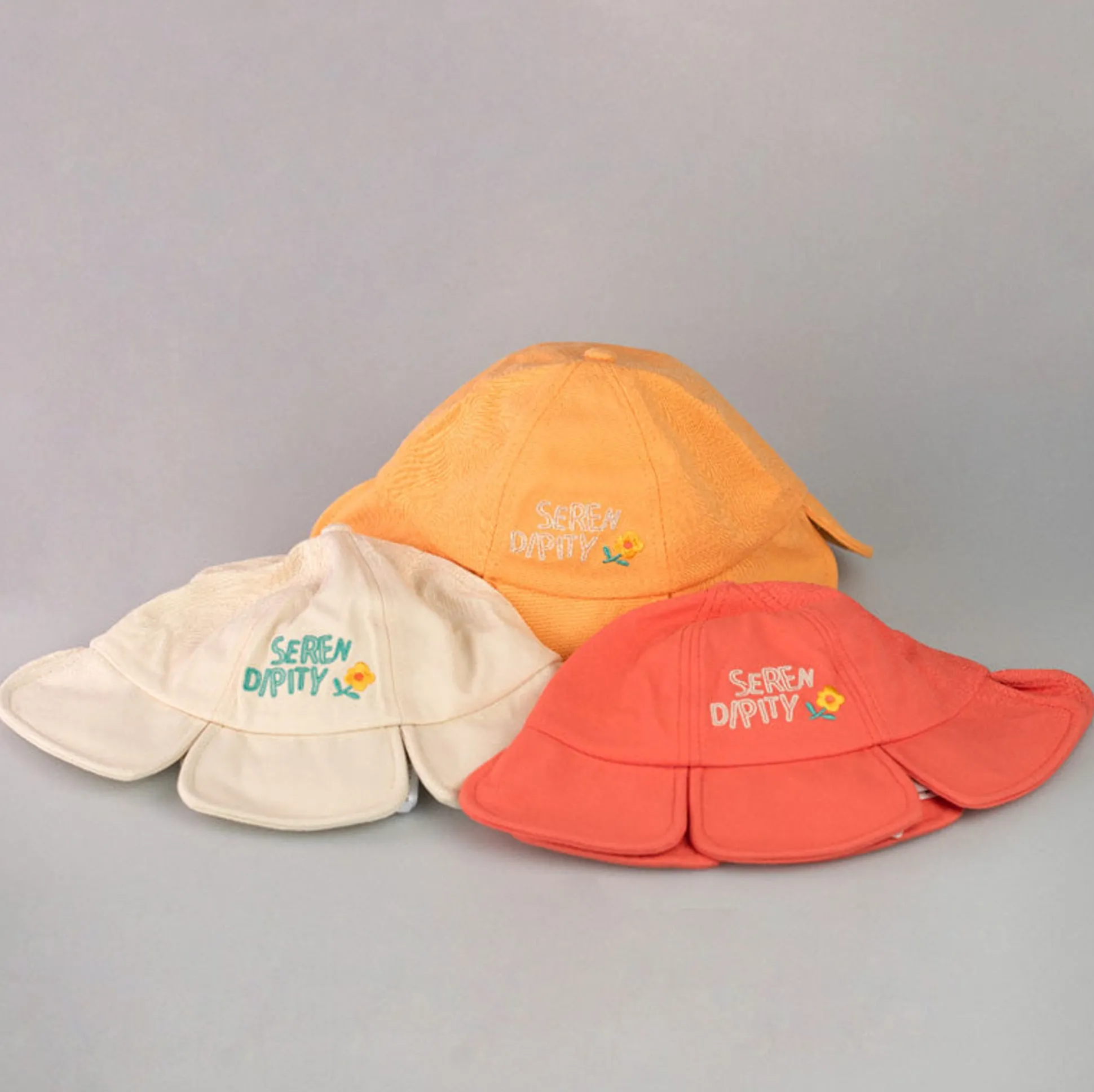 Cappellino Per Bambini Serendipity Color Corallo, Con Fiore Giallo In 3D.