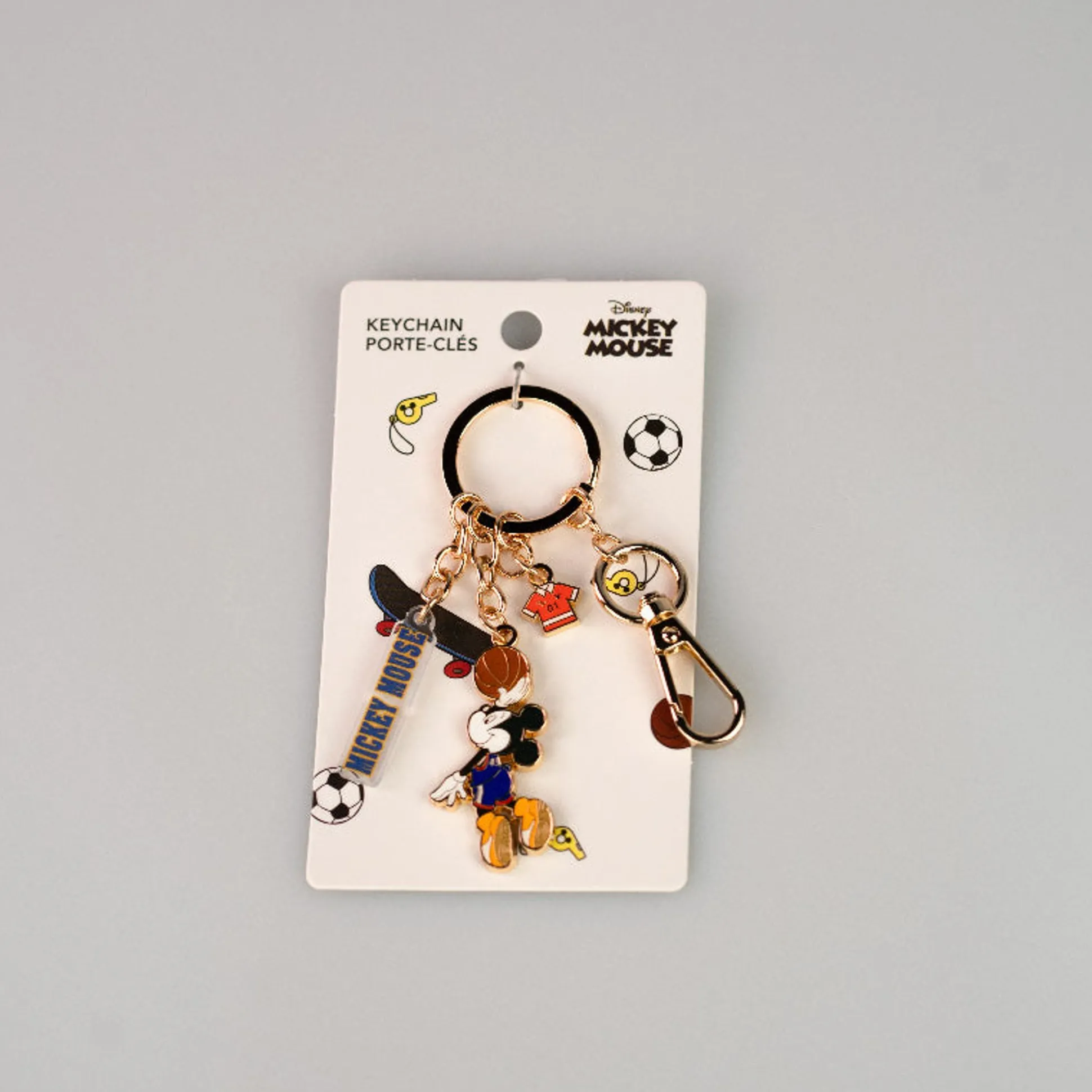 Portachiavi Color Oro Mickey Mouse Collezione Sport, Basket, A Tre Ciondoli.
